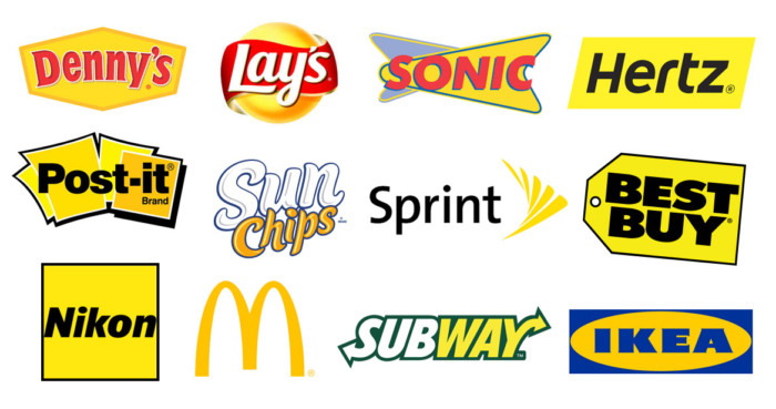 Napríklad žltá je relatívne zriedkavá prakticky v každom odvetví okrem rýchleho občerstvenia – kde je jednou z najobľúbenejších možností používaných spoločnosťami.