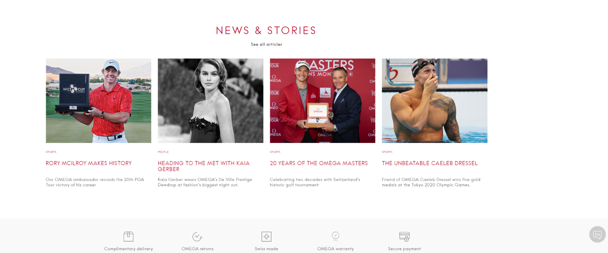 Napríklad švajčiarsky predajca hodiniek Omega používa vo svojom webovom dizajne trocha striebra — čím dodáva webovej stránke bohatý pocit