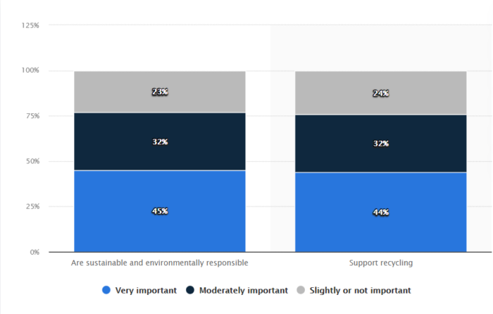 Podľa Statista si 77 % globálnych spotrebiteľov myslí, že udržateľnosť a šetrnosť k životnému prostrediu sú pre značku prinajmenšom stredne dôležité.
